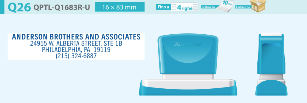 I timbri preinchiostranti personalizzabili sono convenienti per tutti gli usi d’ufficio e personali. Questi timbri di alta qualità possono essere personalizzati con un testo, una firma o un logo.